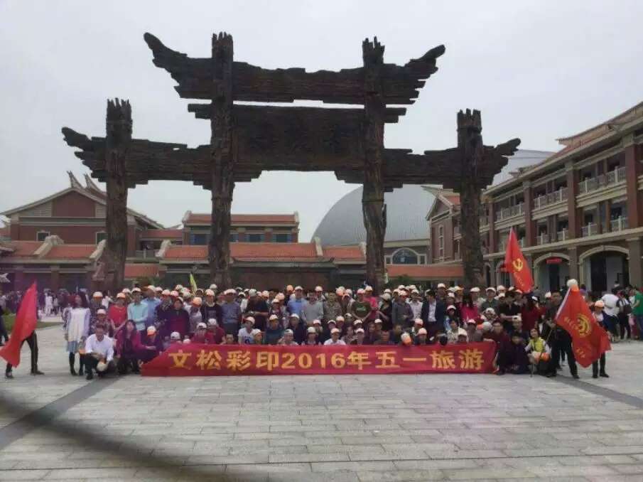 2016年5月1日,文松彩印100余名老員工乘坐2臺(tái)旅游大巴前往廈門古龍醬文化園、老院子、園博苑等地旅游參觀。